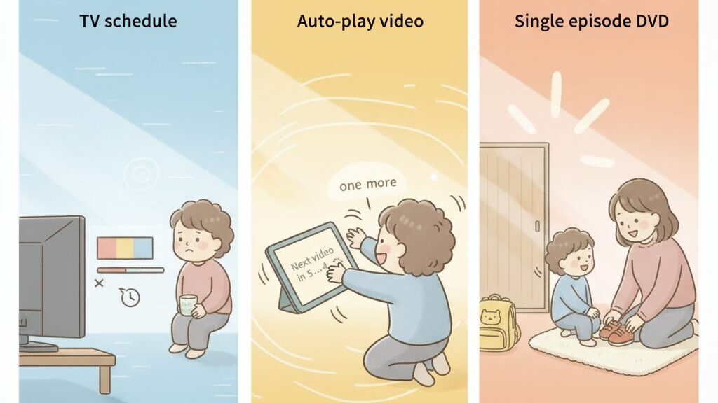 我が家では「朝の準備ができたら1話だけ見る」というルールにしていて、出発の合図代わりにもなっています。