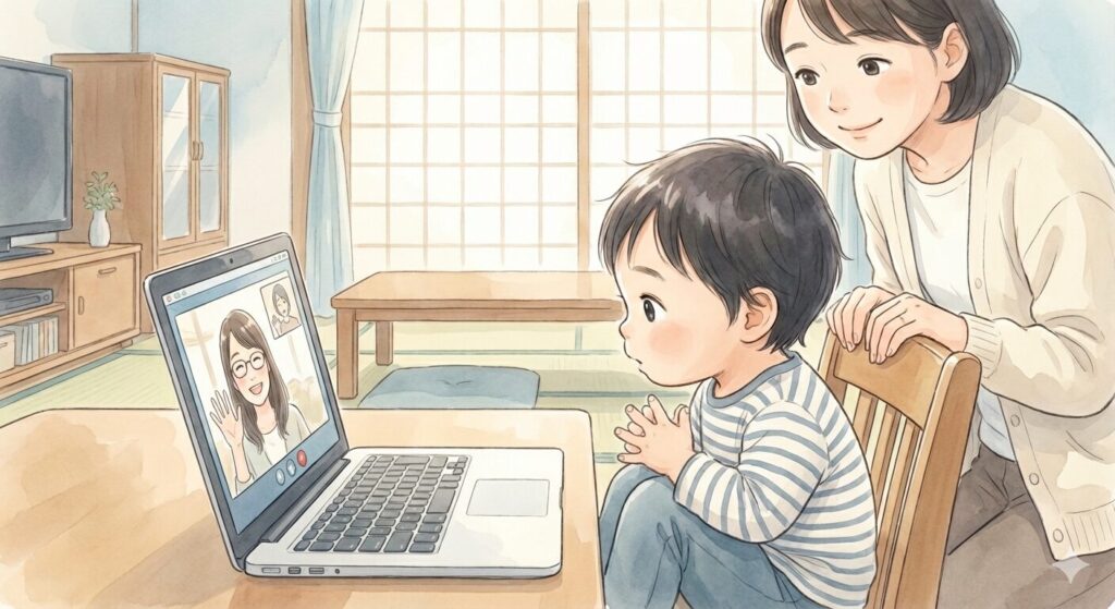 大人でも、初対面の人やカメラ越しのやり取りは緊張しますよね。子どもにとっても、いつもと違う状況では頭の中に言葉が浮かんでいても、うまく表に出せないのです。